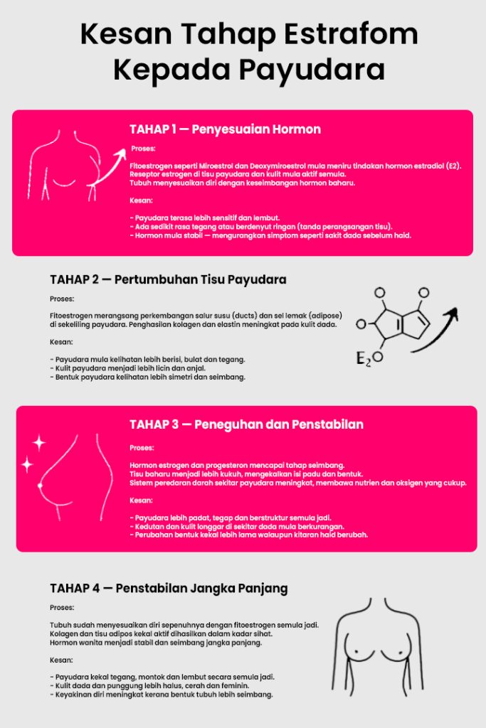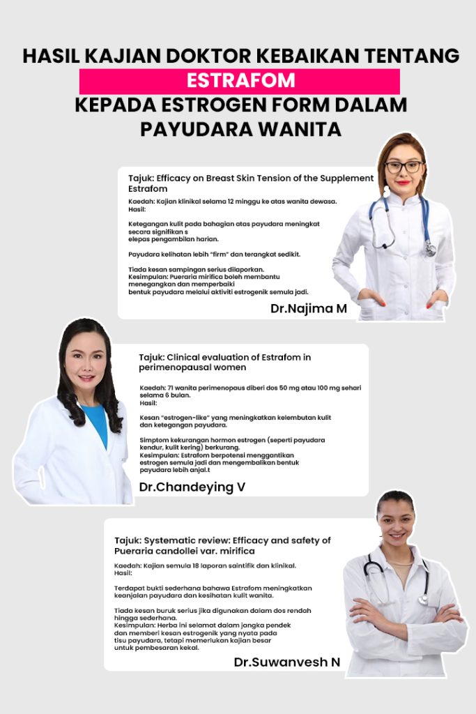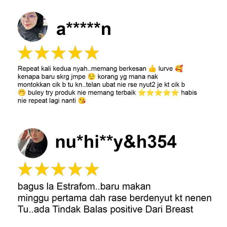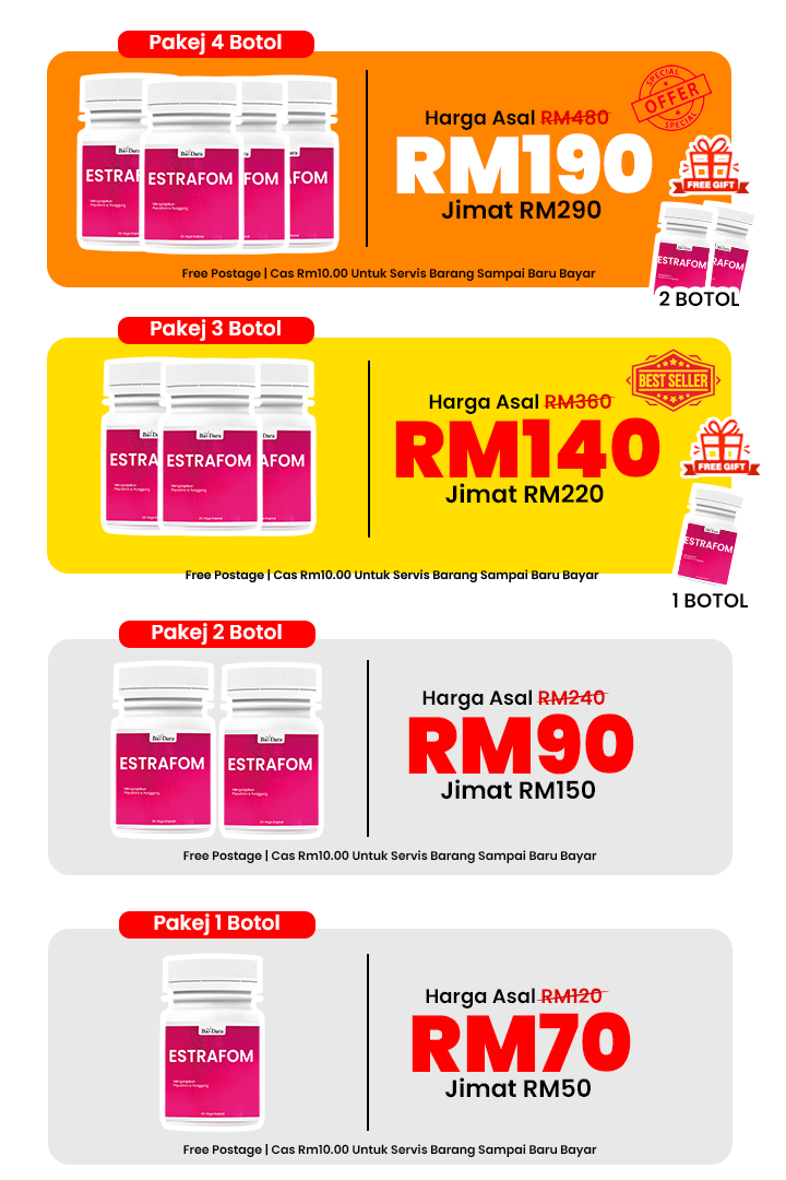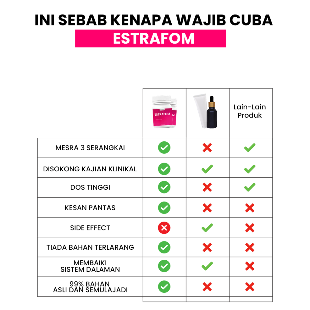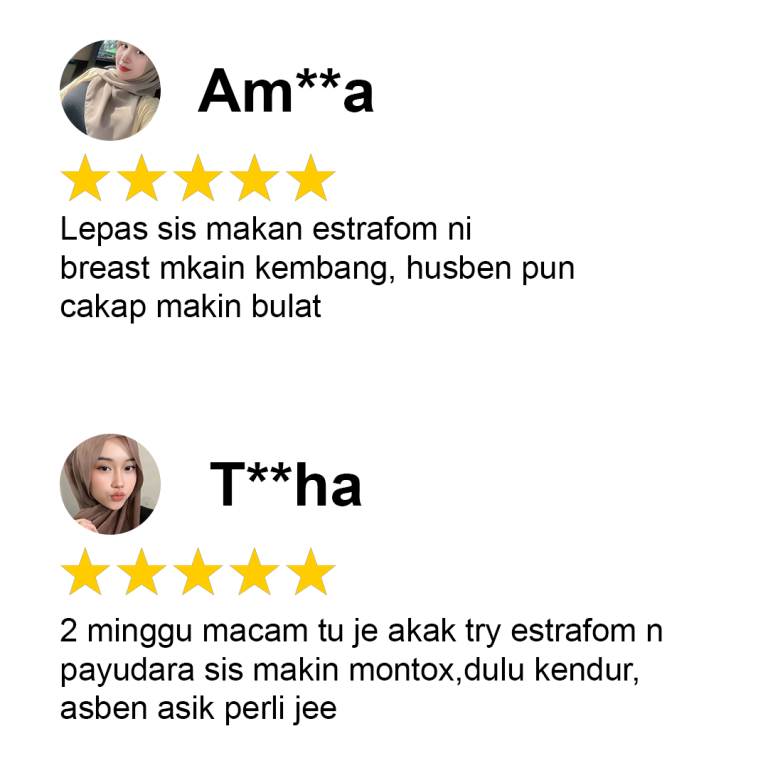 Penafian: Estraform ialah supplemen untuk menyokong kesihatan dan kecantikan luaran dan dalaman wanita semulajadi. Ia tidak bertujuan untuk mendiagnos, merawat, menyembuhkan, membantu atau mencegah sebarang penyakit. Hasil penggunaan berbeza bagi setiap individu