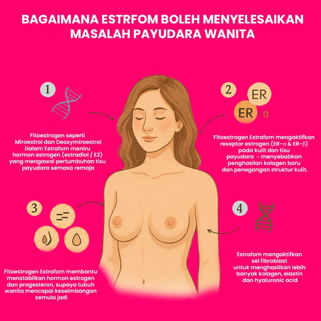 Estrafom ialah supplemen yang diperbuat daripada Pueraria mirifica. Ia diformulasi khas untuk membantu wanita diluar sana yang mempunyai masalah payudara